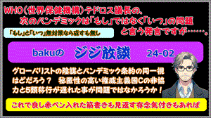 ①テドロス議長の「パンデミックはもしではなくいつ」に付いて