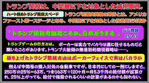トランプ関税はアメリカファースト第一ステージと目される、中間層以下を対象にしたボトムアップ式変則ベーシックインカムの原資なのだろうか。